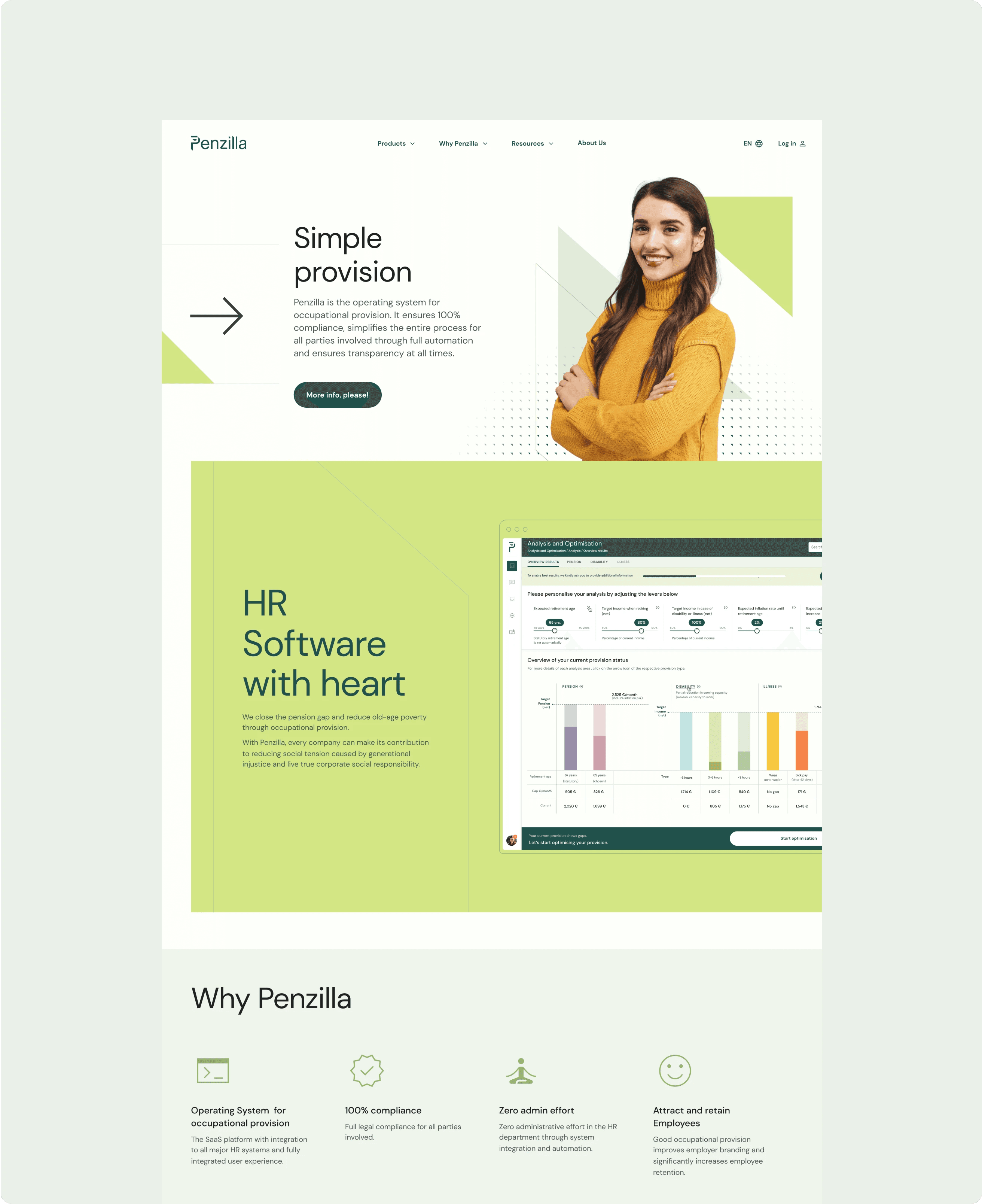 Penzilla es una solución de software que busca la seguridad de los trabajadores ante la jubilación, enfermedad o discapacidad a través de la pensiones corporativas ahorrando tiempo y aportando sencillez.